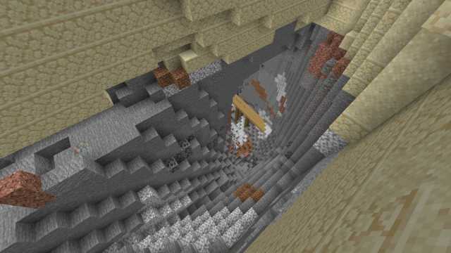 Spawning next to a Mineshaft is a great way to get a lot of loot during your first day in a new Minecraft world. This one is a little more dangerous because a spider spawner lurks near the start of the mineshaft. However, if you traverse it carefully, you’ll find that the treasures it holds are more than worth the risk. When you’ve gathered all you can carry, exit the cave and head southeast along the coast to find a Desert Village. Otherwise, you can walk northwest to find a Pillager Outpost next to a few other structures.