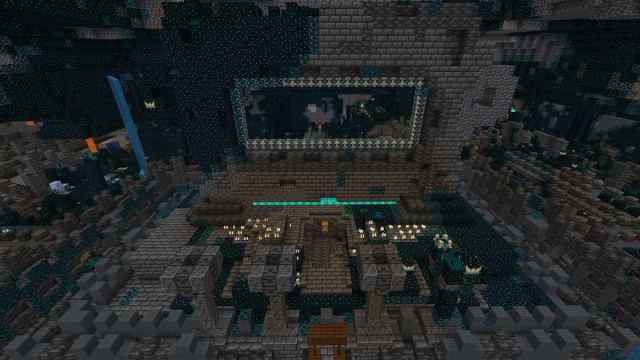 Plains Villages are abundant in this Minecraft world. You’ll spawn between two with another pair of villages to the north and various other villages scattered around the east and the south. By exploring the caves around the area, you’ll come across a unique Ancient City. The portal at its center has generated in a pool of lava, causing lava to flow over the city’s main streets.