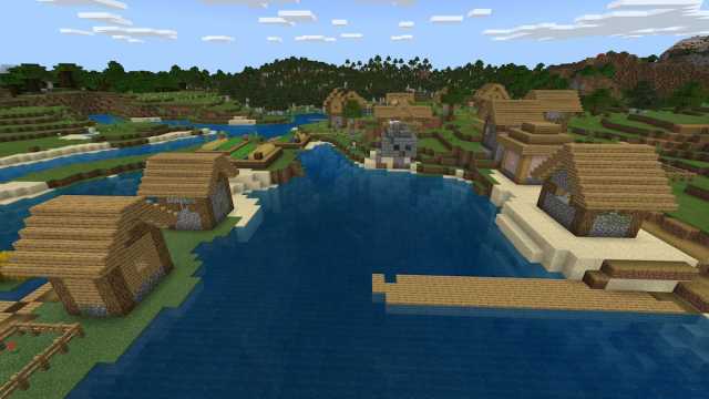 Island seeds are always fun because they provide unique challenges for survival players. This one is an easier challenge because it comes with various biomes and a Village for players to explore. Despite the convenience of the area’s many resources, it’s up to you to use them well and create a comfortable life for yourself. If living solely on the island is boring, take to the ocean to find a few Ocean Monuments and a second village.