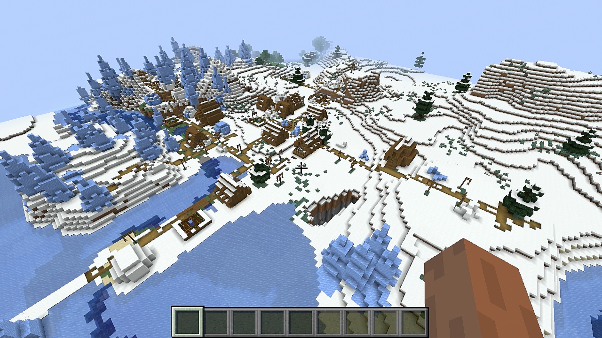 This seed has an igloo and snow village at spawn! These two structures rarely appear so close to each other, but here, they are both readily available as soon as you spawn.