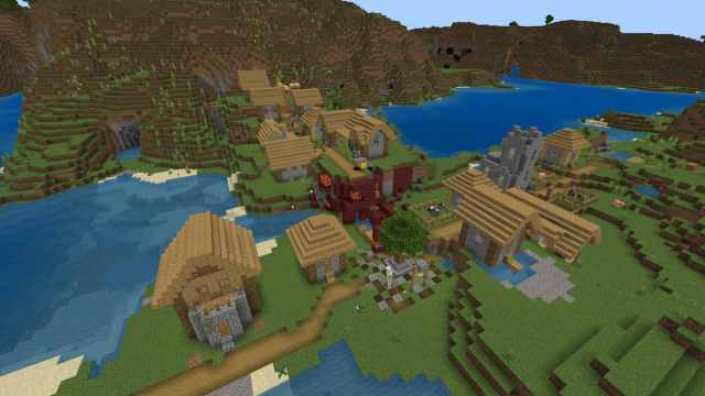 For this one, you'll spawn in a taiga biome next to a village at coordinates -300, 300. The buildings of the village occupy a certain part of a completely frozen river, creating a wild mix of cold and mild biomes.