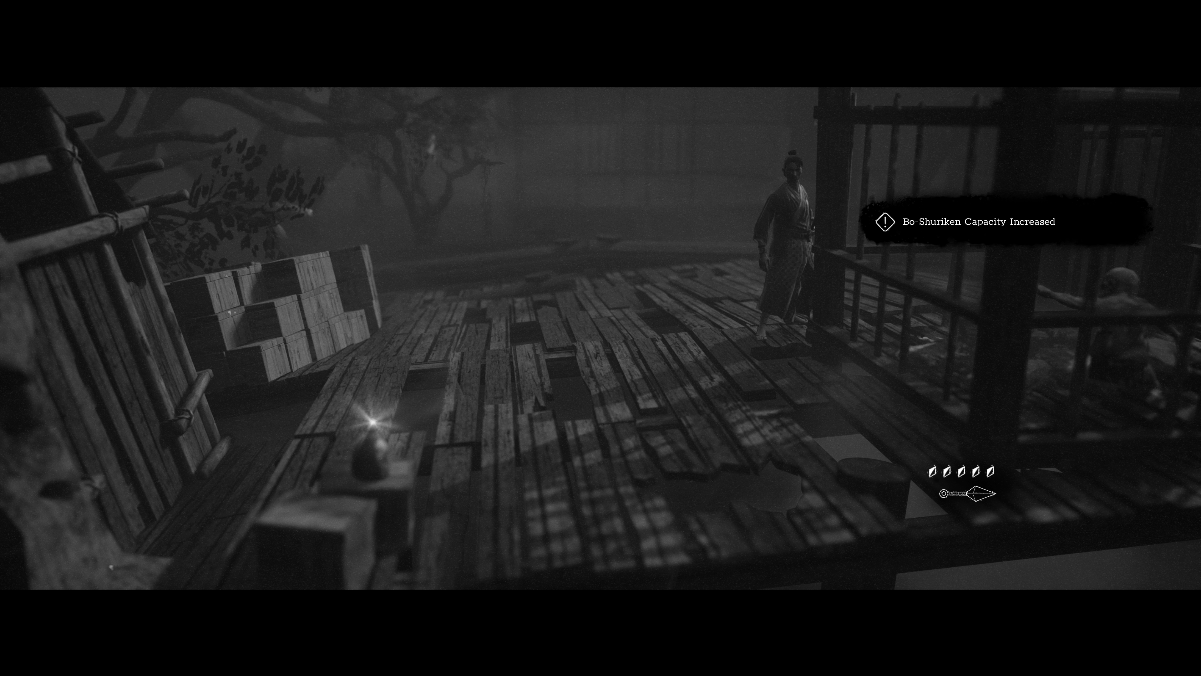 Stamina Upgrade 5 — After you push open the big door to return to Hiroki’s village, you will see a path leading to a house in the background. Outside the house is a distraught man holding his head in his hands. Go inside to find some Bo Shuriken ammo and the next Stamina upgrade.