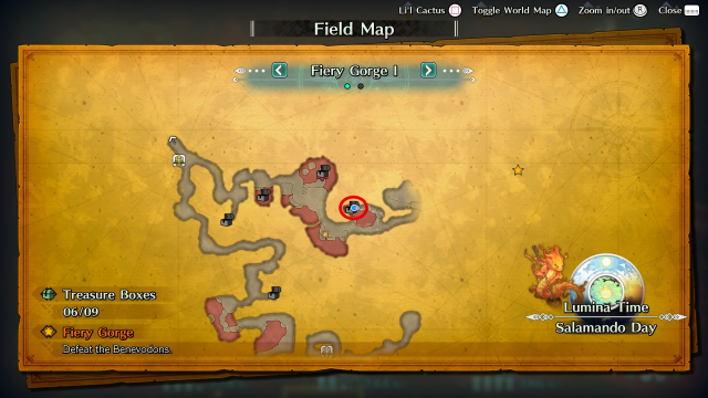 In my first playthrough’s worth of experience (this section may change), the best place to farm ??? Seeds early in your Benevodon hunt is the Fiery Gorge.
