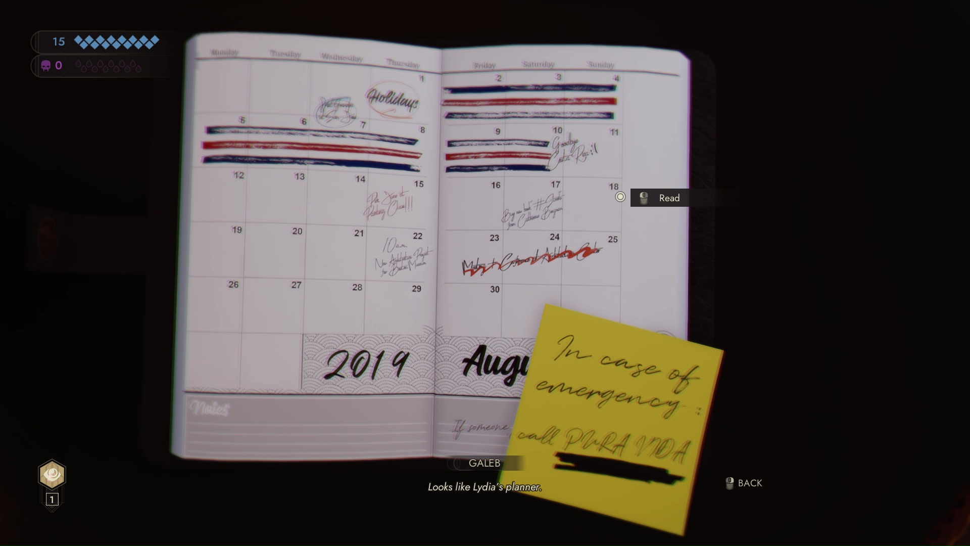 Another clue that’s easy to miss is Lydia Moore’s planner, which can be found on a side table in the dining room.