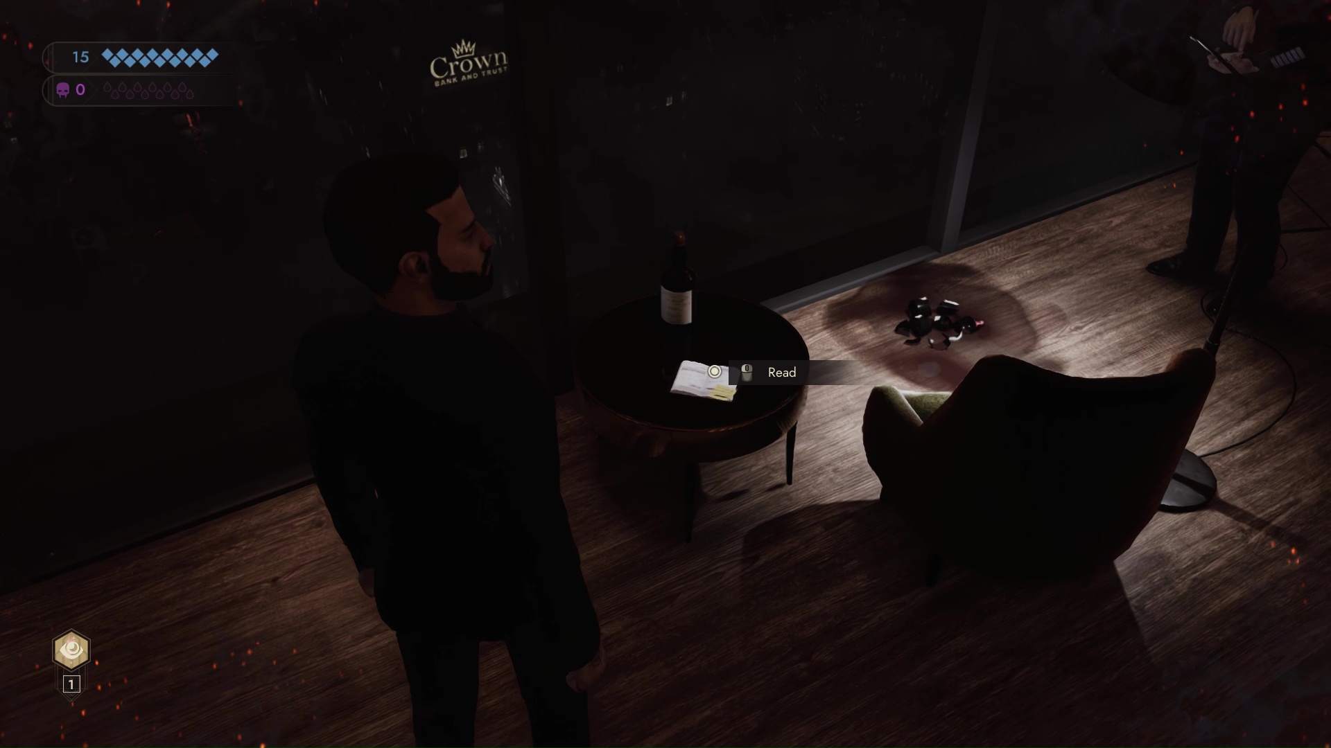 A tutorial gently encourages you to keep Galeb’s Sense the Unseen ability running while you’re in the penthouse. This will point you straight at an ad brochure for Fortress Security-brand billionaire panic rooms.
