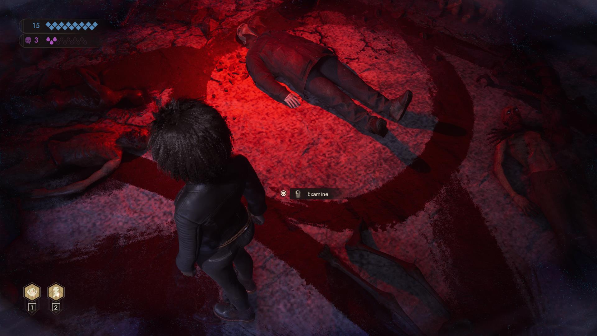 You can either just go back downstairs from here, or opt to erase the markings on the floor that keep the Tremere’s vampire captive under wraps.
