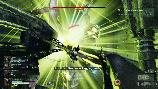 - Be aware of the Corruption level of whoever engages and holds aggro. If they are at high Corruption or just low health in general, you may not want to engage. There is far more wiggle room here if your Ogryn has a Slab Shield.