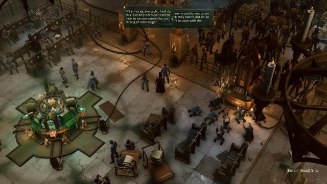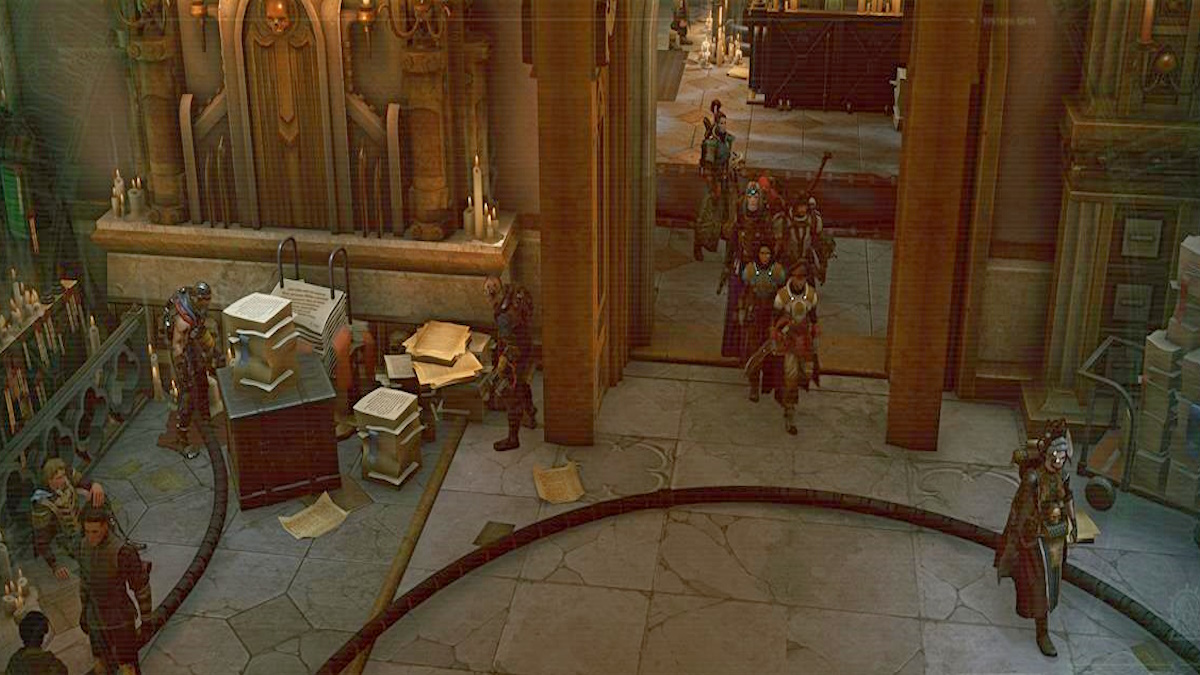 This part of the Mercatum Tabula Officiale quest in Warhammer 40K: Rogue Trader might seem confusing. Once you have both Worn Seals, return to the Administratum Office and talk to the Master of Seals. You’ll enter a large chamber with thousands of petitioners. Worse, you’re asked to just stay in queue. Look around near the western side of the room to find an interaction button that lets you queue.