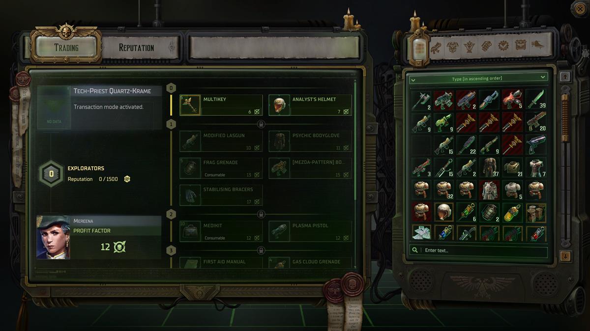 Profit Factor is akin to a currency “tier” or “threshold.” Instead of a fluctuating leger like gold or money usually seen in other games, you don’t actually use your Profit Factor to buy and sell items. Instead, you leverage it to acquire items within your current Profit Factor amount. Weird? A little! Here’s an example of how it works from my time dozens of hours with Rogue Trader: