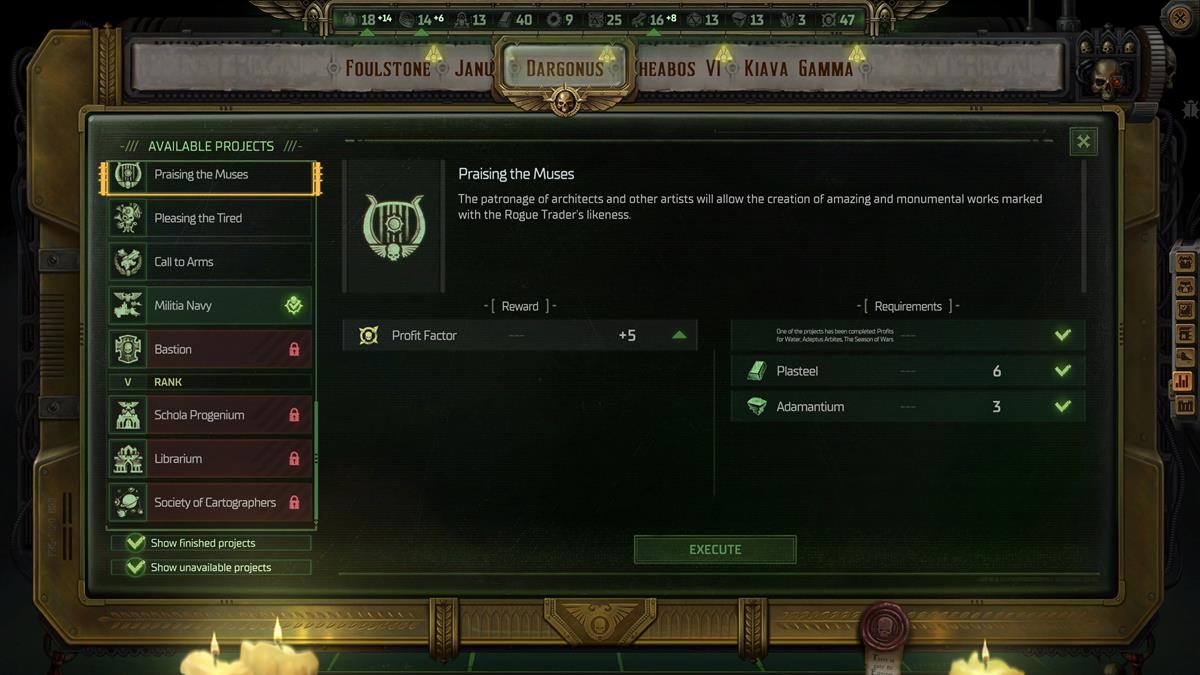 You can earn increase Profit Factor (PF) in Warhammer 40K: Rogue Trader by completing colony projects and through certain events or decisions. The events and decisions happen very rarely, so be patient, keep an eye on them, and make the most use of them when they appear. The most important facets to consider are the projects that you enact as early as Act 2.