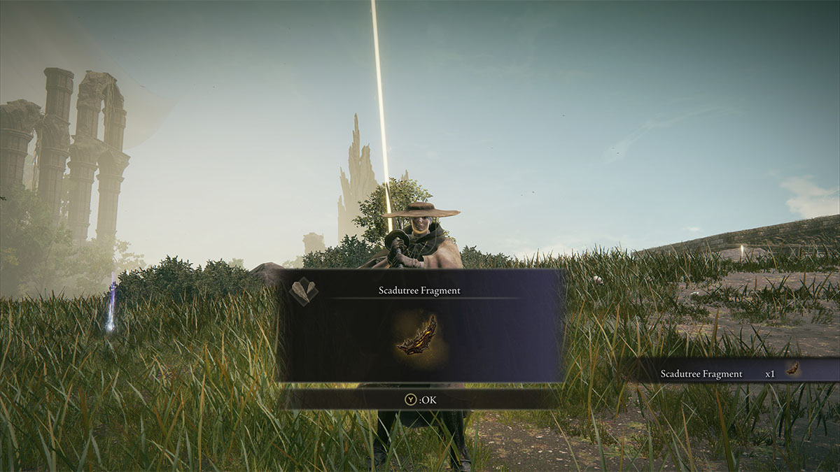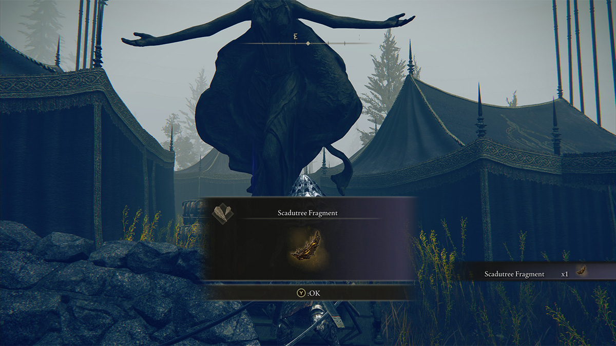 Follow the southern cliffs, past Logur the Beast Claw, and then north when you see the church in the distance. There’s a Black Knight of Messmer guarding the Scadutree Fragments, and while you don’t need to kill it to grab the Fragment, doing so gets you the Black Knight Greathammer for your trouble. Picking up the loot item by the headless statue of Marika actually awards two Scadutree Fragments. Quite the bounty.