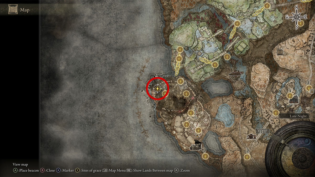 With most of the main areas of Shadow of the Erdtree covered, there is a smattering of Scadutree Fragments remaining throughout the rest of the world. They’re not nearly as concentrated or as numerous, and one of the easiest to get is on the southern shore of the Cerulean Coast. Make your way to the Southern Shore map fragment and continue south toward the cliffside. You’ll see the cross and Fragment sitting overlooking the ocean.