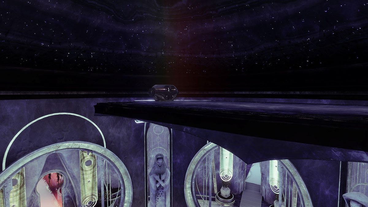 The portals take you to separate areas of The Confluence, but you’re also in single-path hallways leading to the large chamber with the Shattered Throne Dungeon portal (no longer active, sadly). The platform exists near an Awoken statue holding an orb and, with its hand outstretched, to the right of one of the hallways with banners. This Destiny 2 Ascendant Chest is near the ceiling of the room.
