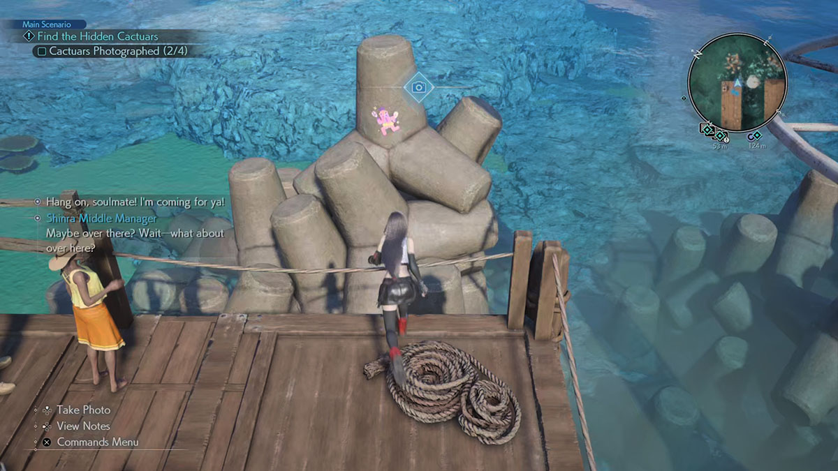 I’ve listed the Cactuars in the order I found them, but Costa Del Sol isn’t the biggest town, and there are Wheelies everywhere you can use to get around if that’s your thing. Also, the Shinra Middle Manager who sets you on your quest for Cactuars will be chatting away at each photo location, and there will be a camera symbol at the top of the screen, so you’ll never be in the wrong place.