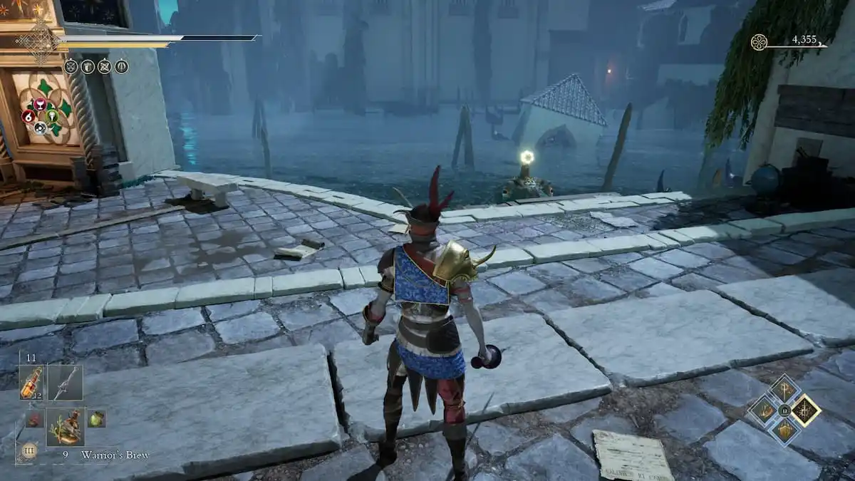 Reaching Bargniff’s second location takes a bit of work, as he’s deep in the city. If you’ve already explored the area, the fastest way to him is to fast travel to the Highborne Streets Reality Knot. Travel towards the Astrarium area of the city until you end up at the small canal that’s gated off.