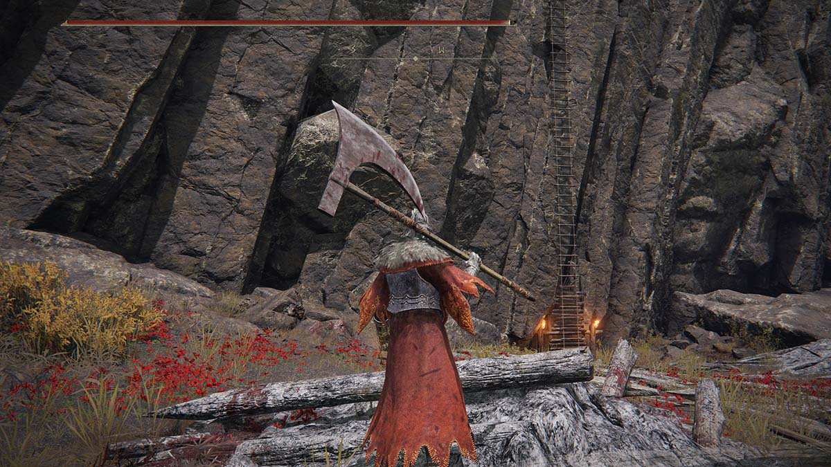 Grab the Bridge of Iniquity Site of Grace, and follow the path to the north (right of the bridge if you face the mountainside). When you encounter a large battlefield with Abductor Virgin constructs rolling around, you’re in the right place. You’ll be taking the ladder on the cliff face, right next to those bladed automatons.