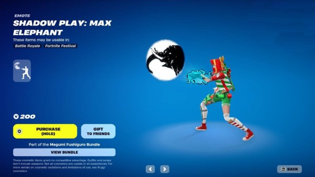 - Includes: Megumi Fushiguro skin, Kon back bling, Shadow Play: Dog emote, Megumi’s Sword pickaxe, Shadow Play: Elephant emote.