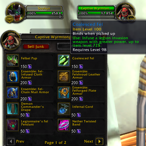 - Ensemble: Fel-Infused Cloth Armor – 200 Nethershards
