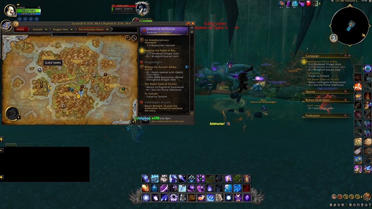 Gahz’raxes can take an extra minute to reach because you’ll find him in an underwater cave at (27, 38). Having to swim to reach him can slow you down and make you miss participating in the battle.
