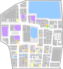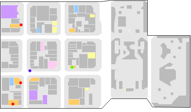 Tatsuya is marked with a blue dot. Restaurants to take him to are marked with red dots. His TV events revealing his new dishes are marked with green dots.