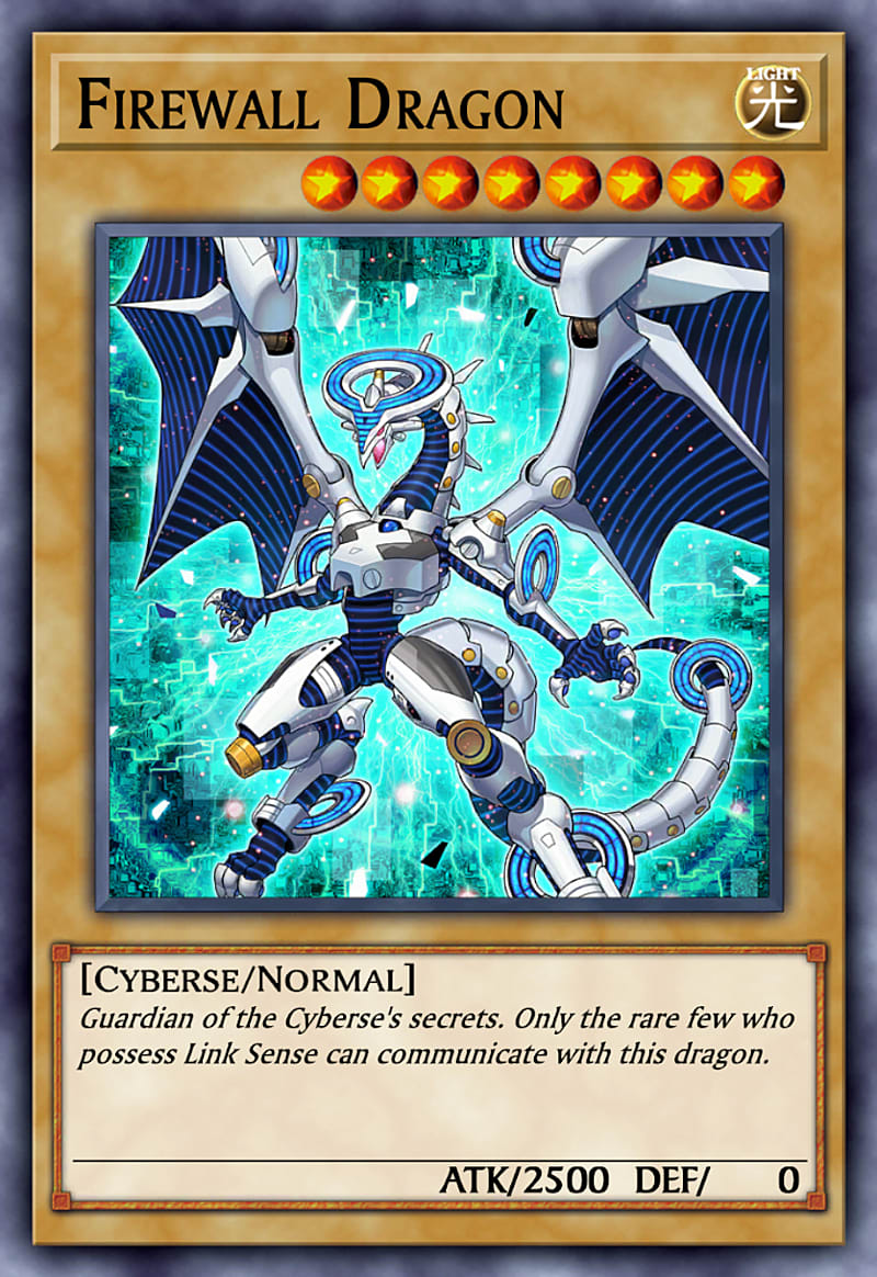 Firewall Dragon is a rather successful amalgamation of several other dragons. For example, it has the same Crusher ability as Blue-Eyes White Dragon, and the same immunity to bounce effects like Odd-Eyes Pendulum Dragon.