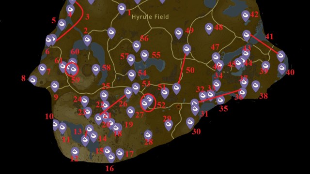Since Hyrule Field is so large, I’ve split it into two sections. This guide covers the southern part of the region, and another guide covers the northern part. As such, some of the Seed icons aren’t labeled because they’ll be included in the northern guide.