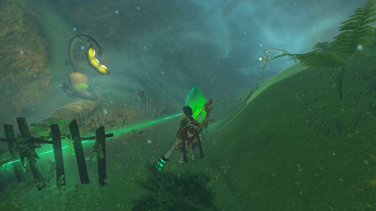 As you continue heading northeast, you’ll reach the Mido Swamp. Since this is a bog, the putrid liquid will cause you to sink after a few seconds. It’s imperative that you find higher ground or climb up on trees.