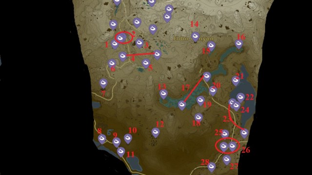 Since the layout of Eldin Canyon is slightly less mountainous, it can be a little easier to travel to each Korok Seed. But traveling between shrines is still incredibly helpful in moving through the region since some of the Seeds are pretty far apart.