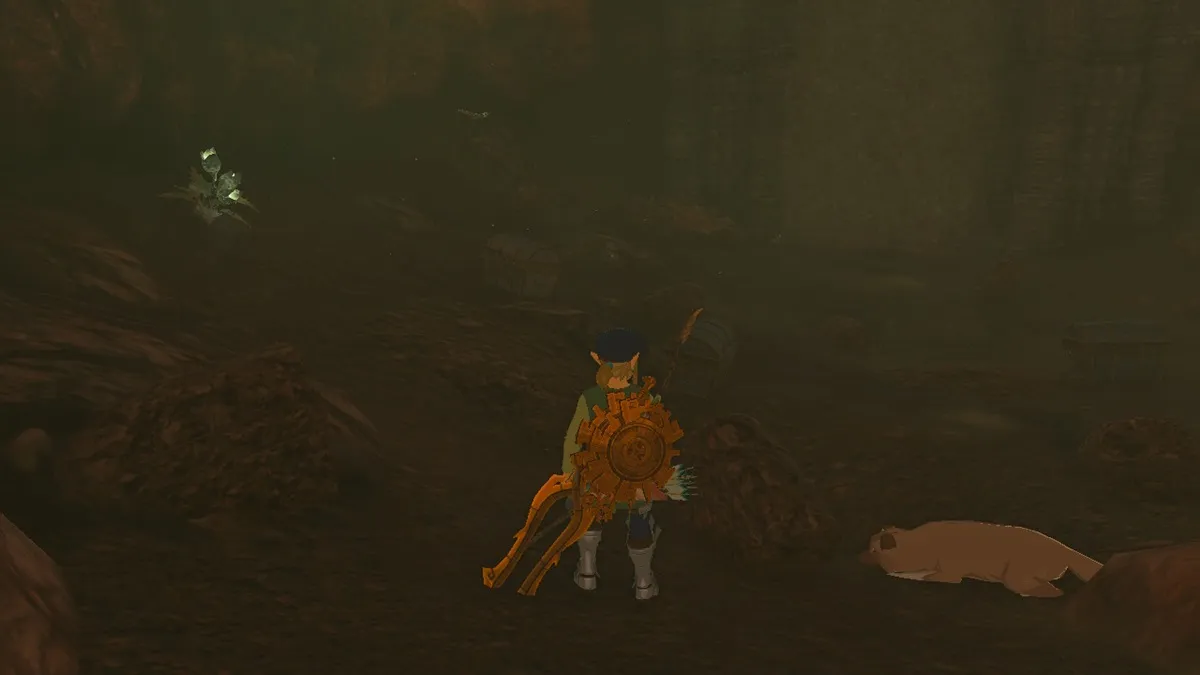 You’ll be at the Skull Lake Cave upon reaching the bottom of the pit. Avoid the Bokoblin skeleton mobs and head to the main cavern. There, a Skullnox (i.e., skeleton Hinox) will emerge. You don’t need to fight it, though, since the chest is on top of a rock formation.