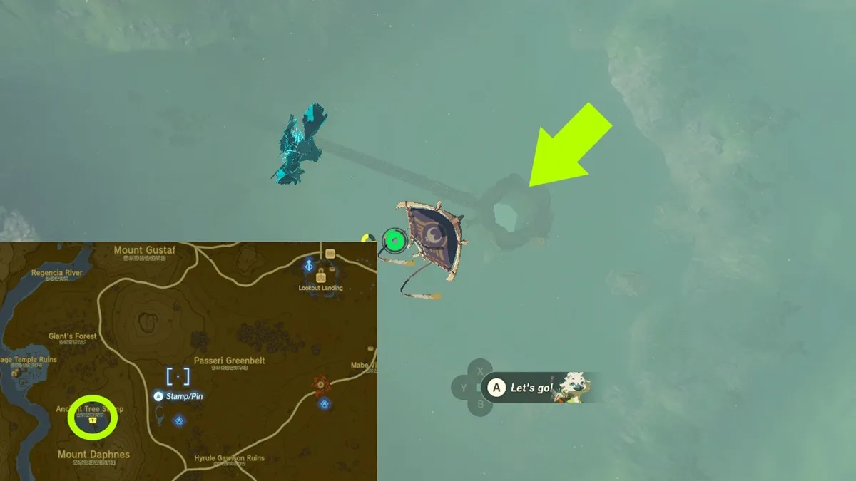 This might be the easiest clue to figure out. In Hyrule Field, just west of the Susuyai Shrine, you’ll see the Ancient Tree Stump. And, yes, it also has a hole at the top that leads all the way down. You can use the Lookout Landing or Hyrule Field Skyview Towers. Alternatively, just drop from any higher vantage point.
