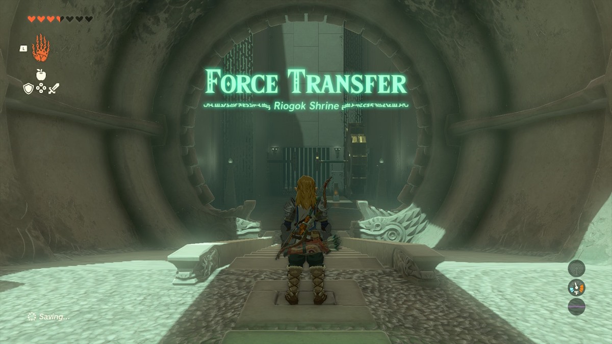 Upon entering the Riogok Shrine, you’ll notice two spinning gears and a log. Given that this is the Zelda: Tears of the Kingdom Force Transfer puzzle, the clue is in the name itself.