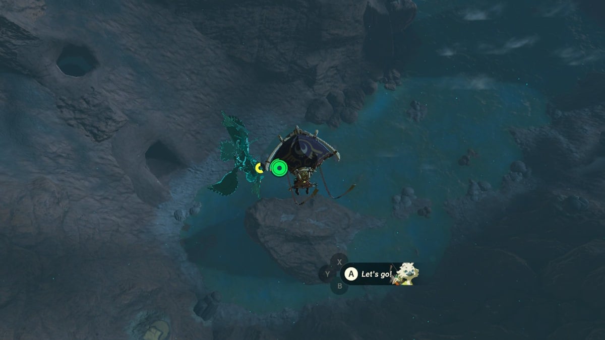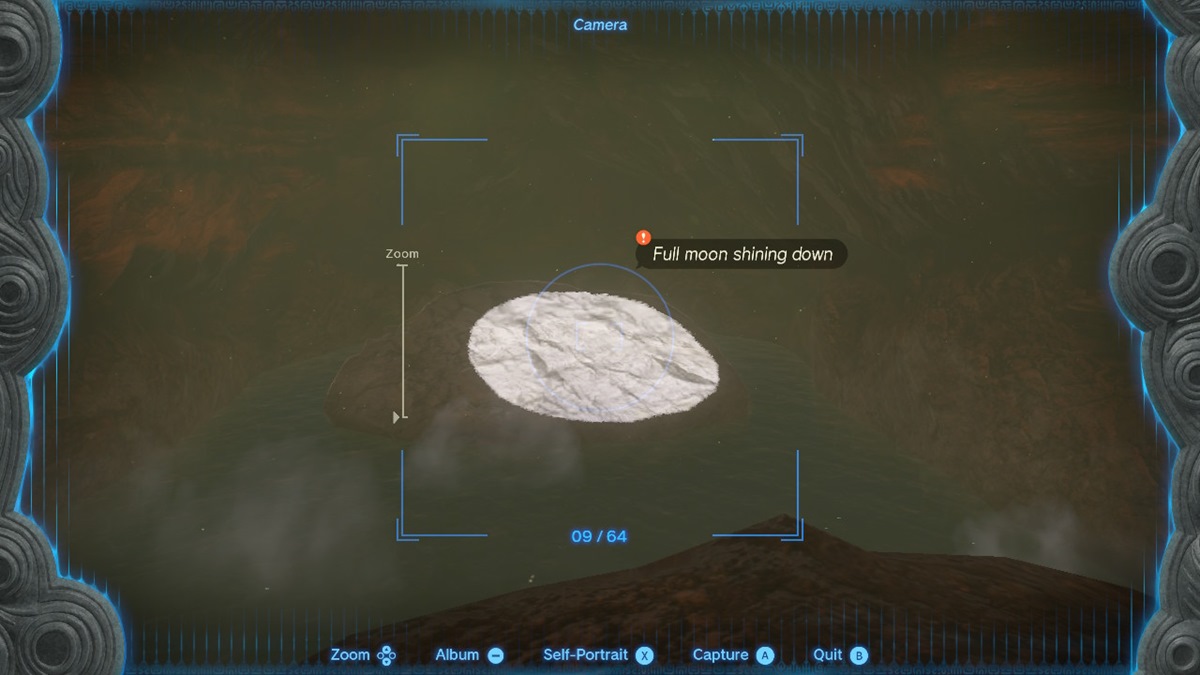 Our goal in this portion of the TotK Moon-Gazing Gorons quest is to take a picture of a full moon as it’s shining on the ground. For this task, you’ll want to go inside the cave and wait until it’s noon in-game.
