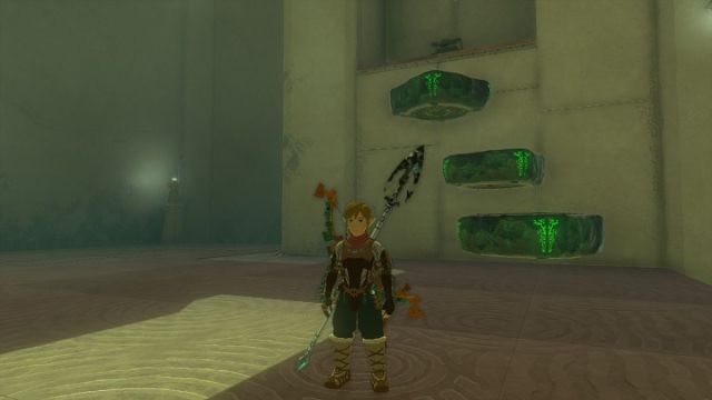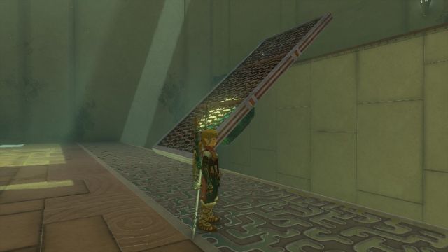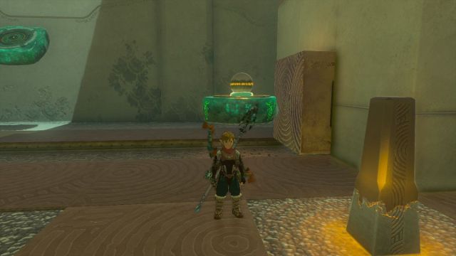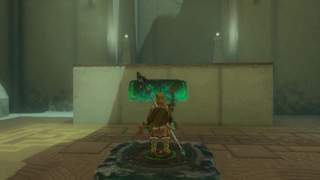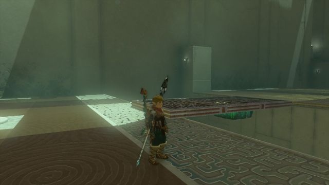 - When you enter the next room, you’ll see another Zonai platform, but it’s not powered on. Hit it with your primary weapon so that it’ll float.