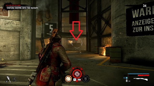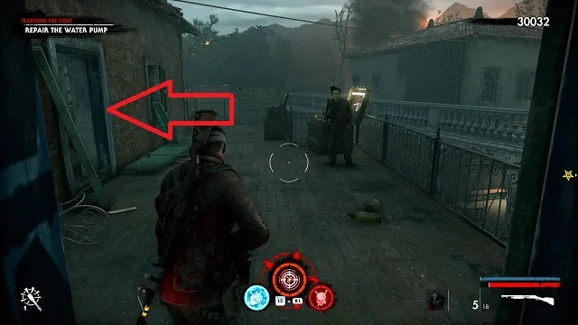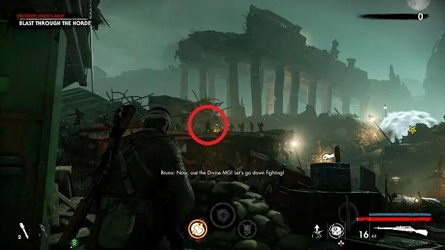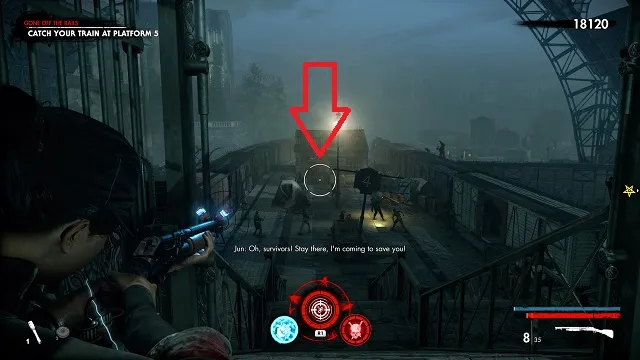 Now move into the area proper. There will be a resistance fighter to your left being attacked by an armored zombie. Kill the zombie before it attacks him.