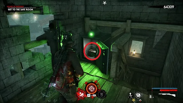 When you exit the saferoom, go left and down to the shooting range. Talk to the resistance fighter and complete his challenge. He will unlock another saferoom and safe, giving you the upgrade kit as a prize.