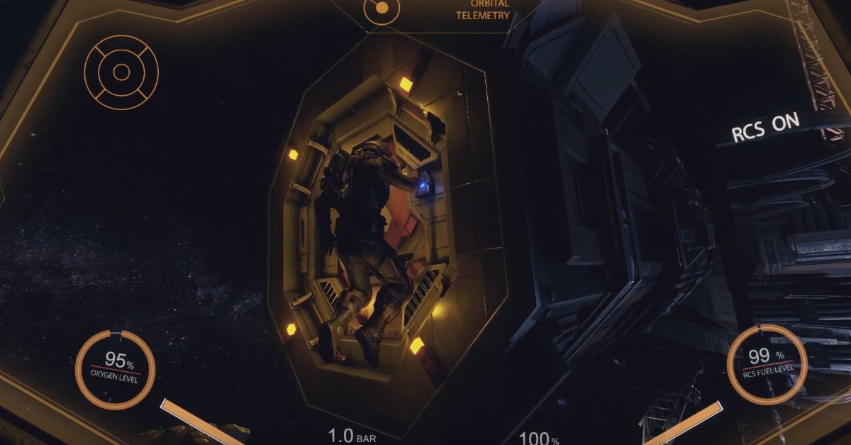 Here’s a view of the engineering team depressurizing the airlock. Airlocks and a few other modules on your ship and space stations are kept in permanent zero-G to ease transitions between environments.